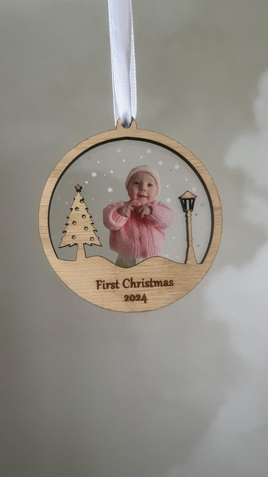 Personalised Hexagon Acrylic Photo with Engraved Wooden Block