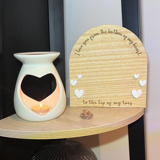 Wooden ‘I Love You’ Footprint Gift – Personalised Heart & Toes Keepsake