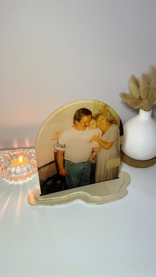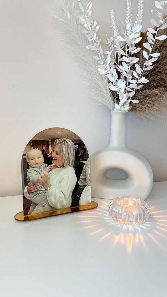 Personalised Acrylic Arch Photo Plaque with Mirrored Base