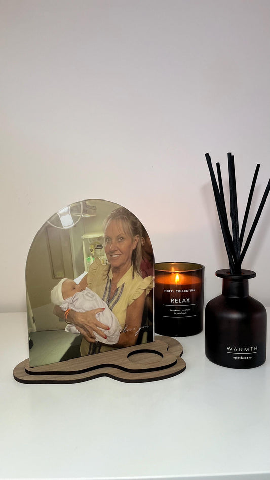 Personalised Acrylic Arch Photo Candle Holder with Mirrored Base
